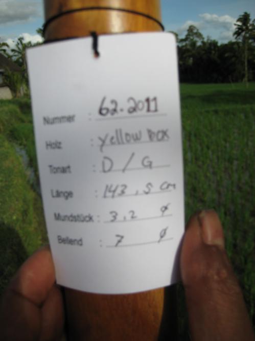 Edles Eukalyptusdidgeridoo mit eigens dafür massgeschneiderter gefütterter Tasche zum Schutz- mit Reissverschluss und Träger. Grundton D. Oberton G. Länge 143,5 cm. Durchmesser Bellend 7 cm. In dem Videoclip wird genau dieses Didg gezeigt und gespielt.